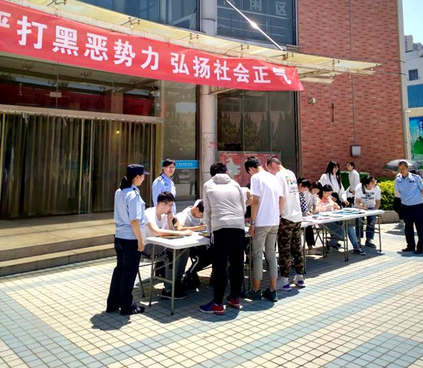 为贯彻落实上级文件精神,构建文明和谐校园,5月23日上午,我院在食堂前广场开展了扫黑除恶专项斗争主题宣传活动。 徐州市公安局泉山分局内保大队、段庄派出所的警官为广大同学宣传法律知识,院纪律保卫部的学生干部向同学们分发宣传单并进行耐心的讲解。同学们表示,会坚决与“校园贷”、“套路贷”和网络诈骗等新型黑恶势力做斗争,养成保护自我的意识,坚决不向黑恶势力低头。 此次活动的成功开展,让更多的同学认识到了黑恶势力的危害,提高了斗争的自觉性和主动性。如遇到黑恶势力会通过法律手段解决问题,在保护自己的前提下及时通知警方,勇敢检举揭发,不断加强自我修养,依法规范自身行为,学会用法律武器维护自身合法权益。学校还将通过校园宣传、主题班会等多种形式开展扫黑除恶宣传教育活动。 (供稿:保卫处)