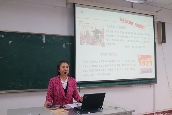 10月14日下午,学院党委委员、宣传部部长李清秀教授走进思政课堂,为2019级130多名学生上了一堂精彩的《形势与政策》课程。李教授结合我院几十年风风雨雨的发展历程,具体讲授中国共产党带领全国人民奋斗历程和共和国成立70年取得的辉煌成就。李教授由浅入深、由具体案例到理论知识的提升的讲课方式,使学生感觉耳目一新。讲课过程中,李教授用大量的图片和详实的数据让同学们真切体会到:中国共产党“能”,马克思主义“行”,中国特色社会主义“好”。激励同学们为中华崛起而读书,为实现中华民族伟大复兴而奋斗。 学院党政领导班子成员、支部书记走进课堂,走上讲台,为大学生讲授《形势与政策》是我院认真贯彻《高校思想政治工作质量提升工程实施纲要》精神,深入推进习近平新时代中国特色社会主义思想和党的十九大精神进教材、进课堂、进头脑,全面落实立德树人的根本任务的具体举措,下一步学院还将邀请更多的校内外专家登上讲台,为更多的大学生传授知识,充分发挥思政课程主渠道作用,切实落实立德树人根本任务。 (供稿:思政部 宣传部) |