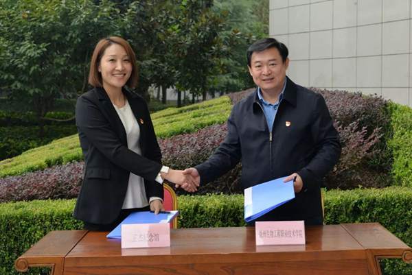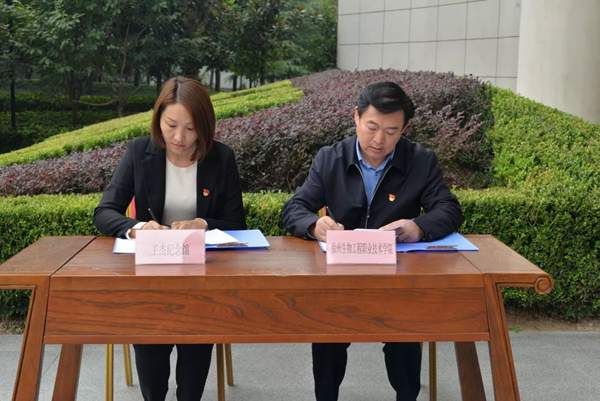 院党委书记谢建林同王杰纪念馆馆长李文静签订了共建红色教育基地协议书。