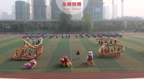 一个满眼秋实的季节,一个壮丽历史和美好未来交相辉映的校园。10月24日上午,在学院第八届师生运动会暨2019年阳光体育活动节的开幕式上,体育部给全院师生奉献了一场宏大的艺术盛宴,由体育部老师编排、指导,432名学生共同参与的大型团体操精彩上演! 本场名为《踏上新征程,明天更美好》的团体操,共由“龙腾狮舞”、“青春飞扬”、“走向辉煌”三部分组成。第一部分龙腾狮舞庆贺盛世华章新时代,六条蛟龙翻腾起舞,气势如虹,四只猛狮呼吸偾张,气宇轩昂,借以表达了全体师生对祖国繁荣昌盛的祝福。第二部分,数百名啦啦操队员神采飞扬,活力无限,形成亮丽的风景,光彩夺目,象征着我院事业如火如荼,预示着我院的明天会更加灿烂辉煌!第三部分,400多名学生手持红扇,不断变换着 “徐州生物”的拼音缩写和“1949”、“2019”、“70”等具有纪念意义的数字,以及“红心”图样,表现了我院“瞻远行实”的校训精神,展示了师生“一颗丹心,我爱祖国”的家国情怀。 整场演出主题鲜明、昂扬向上、催人奋进!其间,高潮迭起、一气呵成、恢宏磅礴!呈现出体育与艺术交融,理想和力量齐现的特点,师生们普遍认为是一次难得的绝美享受! (供稿:体育部)