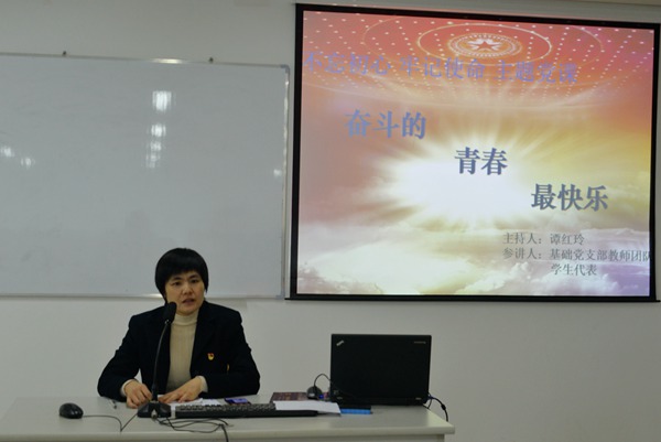2019年11月13日上午,综合楼409教室里,师生济济一堂,掌声此起彼伏,思想的火花在碰撞,青春的旋律在飞扬。在我院纪委书记谭红玲的主持下,一堂以“奋斗的青春最快乐”为题的 “不忘初心、牢记使命”主题党课正在进行。 为更好地践行习近平总书记对教师提出的“四个引路人”的要求,更有效地引导学生珍惜青春岁月,崇德尚技,勤学苦练,成为爱党爱国、服务人民的有用之才,谭红玲书记创新课堂模式,采用沙龙式授课形式,组织了基础党支部教师团队和学生代表共8名师生轮流主讲。党课以不同层面人物的青春奋斗故事为主线,并能结合专业和学生生活实际,注重师生交流互动,形式新颖,内容丰富,深入浅出,入耳动心,收到了良好的教学效果。 思政课教师彭敏以“为了梦想,绽放青春”为题,讲述了两弹元勋邓稼先的青春故事,激励学生树立远大目标,学好技能,报效祖国。体育课教师高威以“超越自我,永不言弃”为题,讲述了“女排精神”,激励学生战胜困难,敢于拼搏,绽放青春,无怨无悔。英语课教师王静向学生介绍了习近平总书记在梁家河7年的青春岁月,重点讲述了他在紧张的劳动和工作之余,仍不忘读书学习的故事,激励学生学习总书记好学、善学、勤学的精神。数学教师毛云舟以一组数据介绍了中国壮丽的山河、灿烂的文化、伟大的成就,激发了学生热爱祖国的豪情,引导他们抓住青春美好时光,为中华民族的伟大复兴而努力读书。语文教师朱曰辰讲述了职业艺术院校毕业生和仲达为了梦想,不怕吃苦,孜孜以求,终获成功的故事,以追梦青年的视觉引发了学生浓厚的学习兴趣。 代表我院参加“博赫杯”2019年全国高职院校生物制药技术技能大赛,荣获团体一等奖的骨干队员、生物制药专科18班徐王波同学;拥有5年工作经验的公司职员、财务管理专科19班新生高寒同学现身说法,和大家分享了自己历经挫折,毫不气馁,坚定信念,走向成功的故事。生物专科192班郭韶珩同学发表了题为“奋斗的青春是幸福的”激情洋溢的演讲。随后听课同学分四组进行了讨论,分别派代表说出了在这堂课上所获得的关于青春的关键词。 党课还为同学们布置了课后作业:确定一句励志格言,讲述一个青年励志榜样人物故事,并结合自身实际,谈谈自己如何度过在校期间的青春岁月。 每一名大学生都是一个世界,完全特殊的独一无二的世界。谭书记相信这堂师生共享、教学相长、榜样示范、恰当引领、互动探讨式励志课堂,必将启发、唤醒、激励大学生更加珍惜大好青春年华,以更加朝气蓬勃的精神状态、更加踏实稳健的行动,奋力书写属于自己的美丽快乐青春。 基础党支部部分党员、思政部部分教师和生物系食药专科18班、财务管理专科19班、会计专科19班全体同学参加了听课活动。 (供稿:基础党支部)