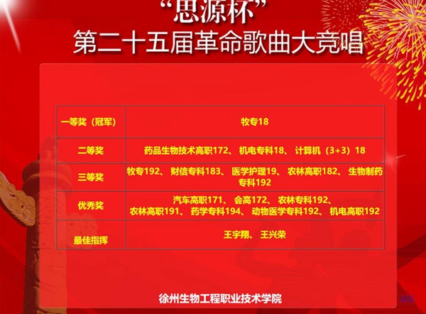 为纪念“12·9”抗日救亡运动84周年,弘扬伟大的爱国主义精神,激发我院学生爱国荣校情怀。12月9日晚,以纪念“12·9”运动84周年为主题的“思源杯”第25届革命歌曲大竞唱比赛决赛在我院大礼堂隆重举行。学院党委副书记秦越华,副院长王安雷,各系党支部副书记、团总支书记及现场600多名同学观看了比赛。本次活动特邀徐州幼儿师范高等专科学校艺术中心主任吴雪梅、中国音协高校音乐联盟理事孙科京、江苏省音乐家协会会员徐丽娅和四位校内教师担任评委。 当晚大礼堂内歌声回响,来自全院16个参赛班级相继亮相比赛。各参赛班级通过演唱两首曲目展开激烈角逐,以一首红色曲目缅怀革命历史,以一首正能量自选曲目展现青春风采。高亢嘹亮的歌声,扣动人心的旋律,整齐划一的动作,端庄大气的服饰,绚丽多姿的舞姿,充分展现徐生青年朝气蓬勃的新风貌。同时,现场每一位观众都可以通过手机扫描“徐生院共青团”二维码为自己最喜欢的参赛班级投票,线上线下实时互动,不断把气氛推向高潮。 中国音协高校音乐联盟理事孙科京代表评委对整场竞唱进行了专业而精彩的点评。王安雷副院长为冠军队伍——畜牧兽医专科18班颁发了奖杯,并合影留念;生物制药专科19-2班荣获线上“最受欢迎班级”;王宇翔、王兴荣两位同学荣获最佳指挥。 (供稿:团委) |