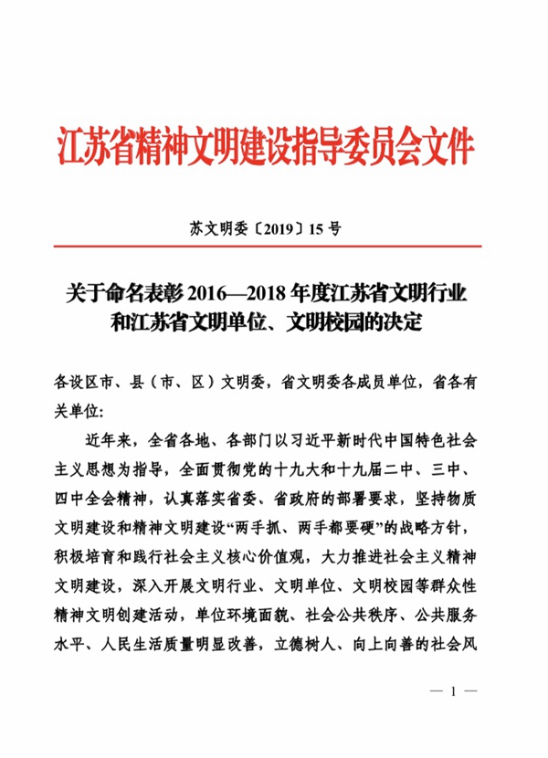近日,江苏省精神文明建设指导委员会下发了《关于命名表彰2016—2018 年度江苏省文明行业和江苏省文明单位、文明校园的决定》,我院名列其中,荣获“江苏省文明校园”称号。这是我院继获得“2013-2015年度江苏省文明校园”、“2015-2017年度徐州市文明校园”、“创建全国文明城市工作先进集体”后文明创建工作获得的又一殊荣,标志着我院文明创建工作迈上了新的台阶。这是全院师生员工共同努力的结晶,是我院精神文明创建活动的丰硕成果。 近年来,学院高度重视文明校园创建工作,坚持以社会主义核心价值观为引领,落实立德树人根本任务,积极培育和践行社会主义核心价值观,把文明校园创建与教育教学工作统筹推进,使校园精神文明创建迈上了一个新的台阶。我院的申报工作得到学院党委高度重视,专门成立了文明校园创建工作领导小组,积极组织,广泛动员,明确分工,落实责任。在各系部处室协同联动和全体师生的共同努力下,认真对照文明校园创建“六个好”标准,抬高标杆,提升质量,扎实开展创建工作。 “江苏省文明校园”这一殊荣既是对我院长期重视精神文明建设工作的高度认可,也是对我院继续开拓奋进的激励,鼓舞广大师生员工以更加饱满的精神状态投入到学习和工作中,必将推动学院各项事业进一步发展。新时期,学院将继续以习近平新时代中国特色社会主义思想为指引,持续深化文明校园建设工作,弘扬主旋律,引领新风尚,为加快学院教育事业高质量发展提供重要保障和巨大动力,为加快建设“强富美高”新江苏作出新的贡献。不忘初心,砥砺前行。 (供稿:党委宣传部) |