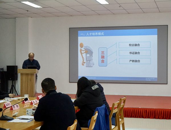 随后,财信系袁剑锋主任向参加论坛的领导和嘉宾汇报了举办本次论坛的初衷、筹备过程及财信系一年来在校企合作和产教融合方面所做工作,并简要通报了财信系2020年校企合作方面的打算。徐州元申软件牛自华总经理代表企业发言,他首先回顾了公司与学院多年来的合作情况,感谢学院为公司培养了一批业务骨干,相信在职业教育大发展的当下,校企合作之路将越走越开阔,期待与财信系在人才培养、科研互助上取得新成绩。杨明副主任从人才培养模式、专业群建设、专业跟岗实习和下一步工作思路四个方面给各位专家做了详细介绍。之后,各企业代表纷纷发言,对我系在校企合作产教融合方面做出的成绩表示赞赏。在认真审议我系人才培养方案的基础上,各位专家针对如何更加精准办学、提升学生的综合素质及寻求校企合作新途径等方面开展了广泛深入的探讨,并提出了许多中肯的意见和建议。教务处史先振处长在听取各企业代表发言后指出,我院会继续推进产教融合机制,并将积极从“共同招生、教学互通、科研互助、文化互融、就业互促”等五个层面探索产教融合新途径。