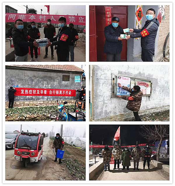 甘做逆行者 党旗迎风扬 李宗杰、杜运纱、许丰华三名同志是丰县孙楼街道张梨园村的基层党员干部。该村位于城乡结合部,外来人口较多,开展疫情防控工作有一定困难。但他们知难而不畏难,逐户上门排查,封闭路口,卡口巡防,驱散村内聚集人员。他们舍小家为大家,日夜驻守在村防控卡口,对往来车辆和人员进行劝导和检查。他们从大年初一开始就没回过家,吃住在村部,每顿都是方便面。村民为他们送来饭菜,表达谢意,他们说:“作为最基层的党员干部,这是我们应该做的!”这些勇敢无畏的“战士们”像一面面鲜红的旗帜,在寒风中坚守,温暖着每一个老百姓的心。