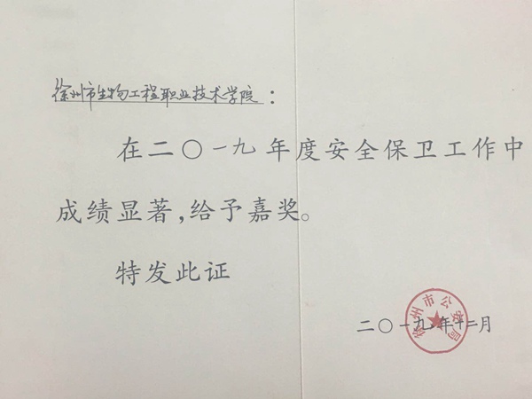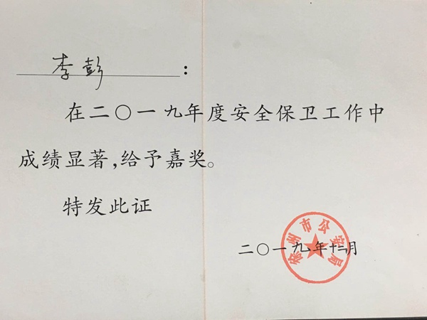 2019年,在学院党政的正确领导下,我院全体教职工紧紧围绕着创建“平安校园”这一中心任务,坚持预防为主、防治结合的工作方针,不断健全内部安全防范制度,完善安全防范措施,忠于职守,爱岗敬业,扎实工作,在保障师生生命财产安全、维护校园安全稳定、消除安全隐患等方面做了大量工作,全年未出现一起安全事故和不稳定事件。 我院被徐州市公安局评选为“2019年度徐州市内保工作先进集体”,李彭同志被评选为“2019年度徐州市内保先进个人”。 (供稿:安全保卫处) |