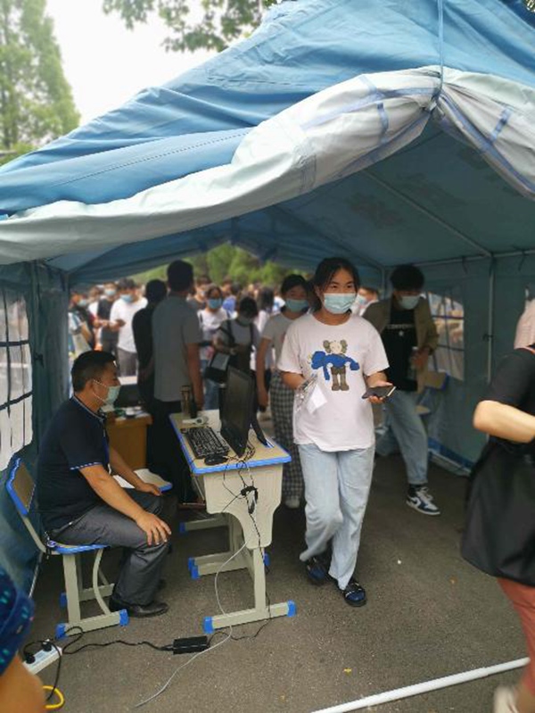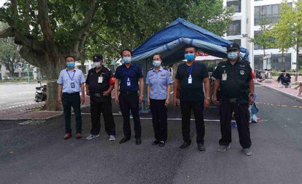 7月29日,我院2020年单招考试顺利进行。按照上级部署及相关要求,考试期间我院严格采取疫情防控措施,近1300名考生依序检测体温、识别身份,在考务人员和安全保卫人员的引导下,通过考生专用通道进入考场。 为做好本次单招考试安保工作,安全保卫处提前召开单招考试安保工作会议,仔细谋划,合理布局,制订安保工作预案,布置当日工作方案。考试当日,考生及送考家长顺利通过体温检测进入校园,近千辆送考汽车在校园有序停放。考试结束后,保卫处全体人员指挥家长车辆有序离校,未出现任何差错和安全事故,圆满完成本次单招考试安保工作。