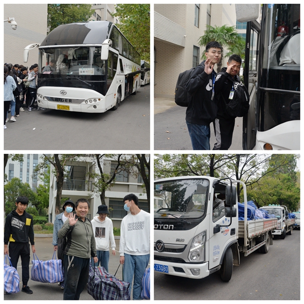 组织严密,协调配合,顺利完成搬迁任务 10月4日,迎着清晨的阳光,信息管理学院学生搬迁工作正有条不紊地进行着。现场早已做好准备的第一批学生将行李搬运至指定停靠点,学校领导、信息管理学院、学工处、资产处和保卫处的工作人员现场指挥,妥善安排,做好行李装车和人数清点工作,整个搬运过程忙碌而有序。学校领导分两个校区现场指挥协调,实时对接。下午2时许,随着最后一辆大巴车缓缓驶入云龙校区,信息管理学院千余名在校生全部顺利搬迁。