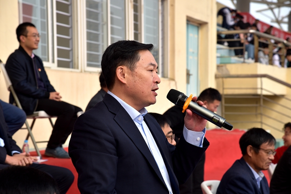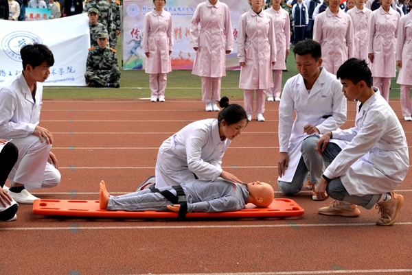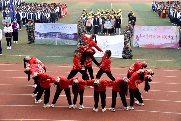 徐锋院长发表了热情洋溢的讲话,他指出,“体育是生命中的阳光”,丰富多彩的体育活动不仅可以强健我们的身体,同时也能磨练我们的意志,培养持之以恒、适应各种环境、克服困难、团结协作的精神;良好的身体素质更是学习、工作的前提和保证。我院坚决响应国家体育总局提出的“每天锻炼一小时,健康工作五十年,幸福生活一辈子”的号召,希望全体师生员工在紧张的工作、学习之余,积极参加体育锻炼;让自觉参加体育锻炼成为我们生活中的一部分。真正把体育活动融入到每天的学习、生活、工作中去,用健康的身心永葆学习和工作的青春。本次运动会既是对我院体育工作的一次大检阅,也是各二级学院办学水平的检阅,必将推动我院体育事业的高质量发展,促进学生素质的显著提高。徐锋同时寄语同学们要秉承“传承体育精神、拥抱健康生活”的大会主题,以拼搏的姿态,饱满的热情,展示青春的风采。