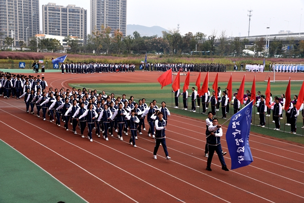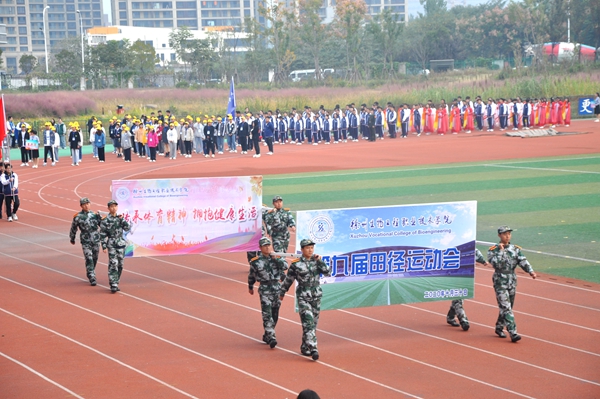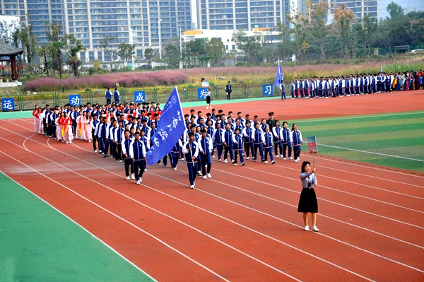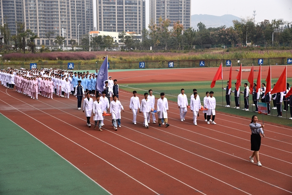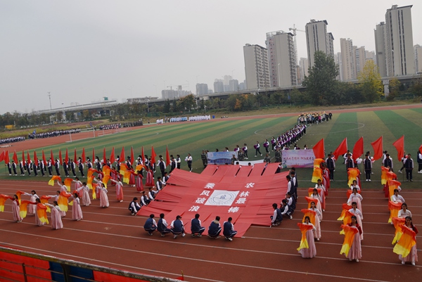在护旗手庄严地护送五星红旗和学院校旗的引领下,各代表队依次入场。分别有,未来是农艺师、园艺师、设计师、建造师组成的农林工程学院方队,他们把和谐农林、创新农林、开放农林展现的淋漓尽致,演绎着“使命在肩、奋斗有我”的亮丽风采;有卧虎藏龙的动物工程学院方队,他们中间涌现出一批行业精英、技术骨干,博士、硕士等优秀人才云集,向大会展示了坚韧不拔、永不言败的精神;有斗志昂扬,充满青春活力的药品食品学院方队,这是一个奋发向上、朝气蓬勃的集体,他们将用拼搏诠释体育精神;有努力拼搏,力争上游的信息管理学院方队,他们容光焕发、英姿飒爽,洋溢着青春的活力;有巾帼居少不畏众的生物装备学院方队,民生之本在健康,生物装备保健康!为圆新时代“中国生物装备智造梦”,生物装备学院吸引了一大批符合社会需要的高素质人才,他们将用智慧和拼搏展现风采;有二次亮相,内敛含蓄、努力向上的医护方队,年轻代表着朝气,年轻代表着活力,年轻代表着一往直前,无所畏惧,她们是最美的天使。各方队着装整齐、精神抖擞,经过主席台前富有创意的舞蹈、军体拳——极具特色,精彩纷呈,充分展示了各学院专业特点和亮点,展示了广大师生对体育运动的热爱与追求,彰显了师生的豪迈激情和对未来的美好憧憬。入场式后,全场起立,共唱中华人民共和国国歌。