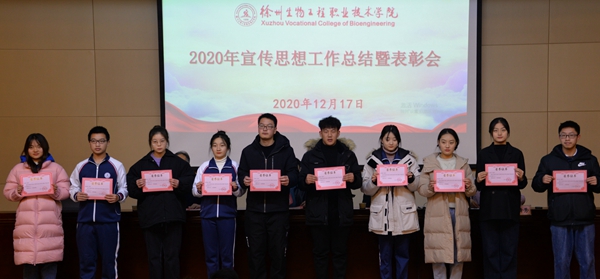 12月17日下午,学校2020年宣传思想工作总结暨表彰会在泉山校区图书馆三楼报告厅召开。党委书记谢建林,党委委员、组织部部长赵宇善,党委委员、宣传部部长李清秀出席会议。会议由党委副书记秦越华主持。 会上,李清秀围绕理论武装、意识形态、内宣外宣、队伍建设、文明文化、网络舆情等7个方面全面总结了2019年我校宣传思想工作,指出了存在的问题,并明确了2021年宣传思想工作重点任务。 赵宇善宣读了校党委对2020年度宣传工作先进集体和先进个人、2019年度蓝墨云班微党课优秀作品、第一届网络文化节优秀作品和优秀指导教师的表彰决定。 会上,荣获2020年度宣传工作先进集体和先进个人代表——信息管理学院党总支书记张宁、组织部王子龙分享了宣传思想工作的工作经验和写稿过程中的心得体会。公共基础党总支书记、思政部主任付学军交流了推动思政课教育创优发展的具体做法和成效。 会议最后,谢建林做总结讲话,他首先代表学校党委向受表彰的先进集体和先进个人表示祝贺,向在学校宣传思想工作中做出不懈努力的各位同志表示衷心的感谢。谢建林指出,一年来,学校宣传思想工作坚持以习近平新时代中国特色社会主义思想为指导,坚持立德树人根本任务,牢牢把握正确政治方向,坚持守正创新,敢于担当作为,工作有创新、有亮点、有突破、有成效。在2019年获得省文明校园以后,2020年宣传思想工作一步一个台阶,内宣外宣数量质量实现大提升、新媒体与传统媒体融合互补提质飞跃、意识形态领域安全稳定可控、与专业文化结合创特色做优质校园文化,服务学校中心工作大局,为学校的安全稳定和高质量发展做出了突出的贡献。他强调,现阶段全校上下对宣传思想工作的重视程度得到较大提升,一支较高素质和能力水平的宣传思想工作队伍已经基本建立起来,为今后做好宣传思想工作打下了坚实的基础。就如何做好明年宣传思想工作,谢建林提出五点要求:一是守牢政治红线,压实意识形态工作责任制;二是加强政治学习,增强理论武装实效性;三是坚持正确舆论导向,管好用好宣传思想阵地;四是建设特色校园文化,提升校园精神文明建设水平;五是加强宣传思想工作队伍专业化建设,不断夯实人才基础。谢建林要求,全校上下要从落实立德树人根本任务的高度认真做好宣传思想工作,为推动学校各项事业高质量发展,建设特色鲜明、优势明显的高水平职业院校提供有力思想保证、精神动力和舆论支持,以优异成绩向建党100周年献礼! 为贯彻好会议精神,秦越华指出,一要认真传达学习本次会议精神,结合工作实际,认真贯彻落实。二要进一步提高政治站位,深化对宣传思想工作重要性的认识,强化责任担当,切实增强做好宣传思想工作的使命自觉。三要创新工作举措,构建起宣传思想工作大格局,推动宣传思想工作不断强起来、实起来。 各二级学院党总支(直属党支部)书记、副书记,团委书记,各党支部书记、宣传委员以及思政课教师、辅导员、获奖代表,共100余人参加了会议。