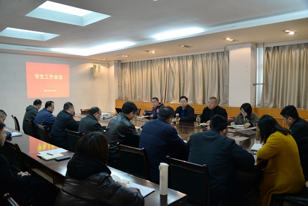 会上,郭士焱总结回顾了2020年学生工作取得的成绩,分析了当前我校学生工作面临的新形势,解析了学生工作的新内涵,重点部署了学生思想政治教育、学风建设、心理健康教育、辅导员队伍建设等方面工作。安全保卫处处长李彭围绕“筑牢思想防线、守住发展底线”作了新年度工作部署。团委副书记徐媛媛介绍了学校2021年共青团工作要点。