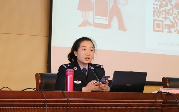 3月23日下午,学校安全保卫处特邀段庄派出所张博尧教导员和陈楠楠警官来校,在图文信息中心三楼报告厅作“防范通讯(网络)诈骗和校园暴力欺凌”主题普法宣传讲座。本次讲座由安全保卫处处长李彭主持,各二级学院三百余名学生代表聆听讲座。