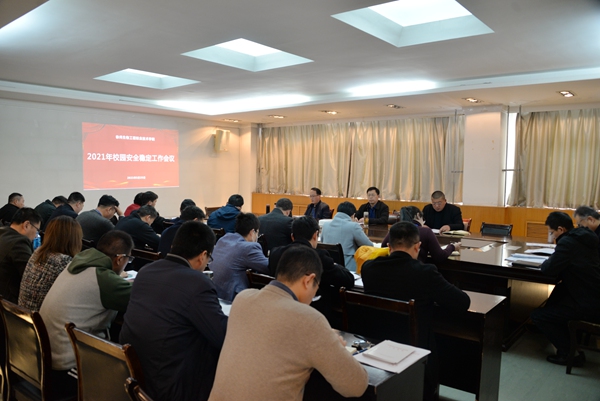 3月25日下午,我校在综合楼一楼会议室召开2021年校园安全稳定工作会议,党委委员、副校长王安雷,安全保卫处处长李彭出席会议。会议由保卫处副处长黄洪松主持,新沂校区、各二级学院党政负责人及各部门负责人参加会议。