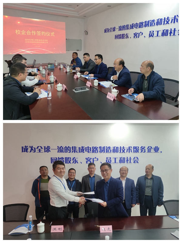在江苏长电科技股份有限公司,总经理助理洪刚带领赵虎一行参观了企业生产车间,介绍了公司发展状况,并表达了对校企双方开展深度合作的良好愿望。赵虎从学校办学定位、专业建设、人才培养等方面介绍了学校发展情况,对长电科技坚持走自主研发高精端芯片封装之路给予高度评价,并希望通过双方在人才培养、专业共建、学生实习就业等方面的深入合作,为专业发展带来新机遇,为企业发展提供强助力。最后,校企双方领导签署了战略合作协议。