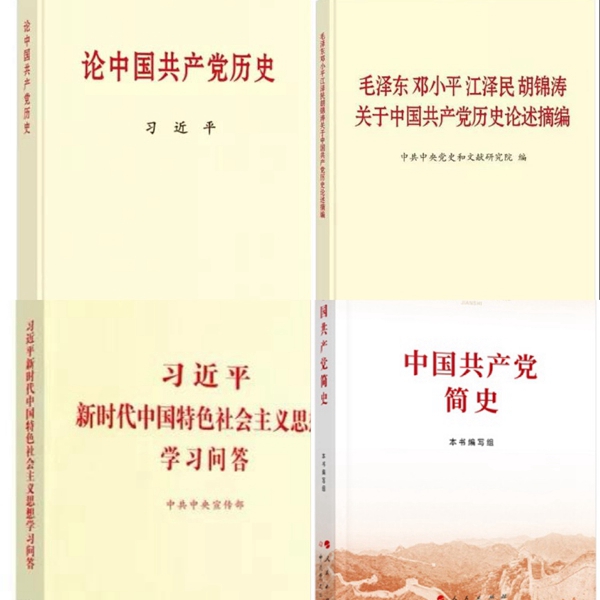 本次学习教育发放的指定书目分别是:习近平《论中国共产党历史》《毛泽东、邓小平、江泽民、胡锦涛关于中国共产党历史论述摘编》《习近平新时代中国特色社会主义思想学习问答》《中国共产党简史》。