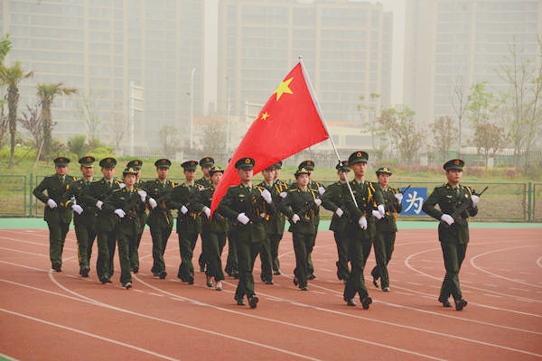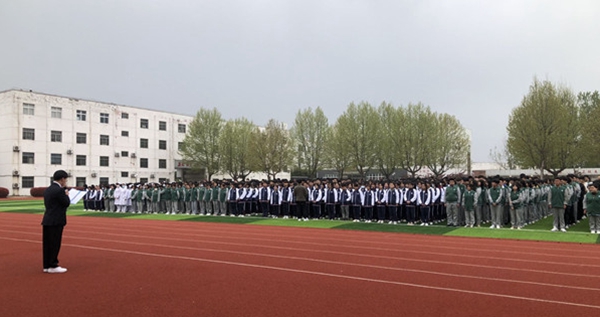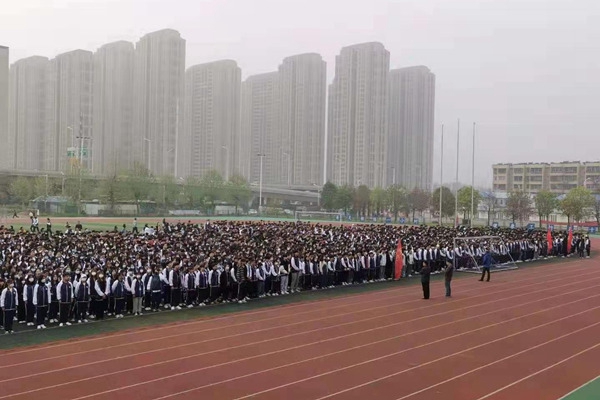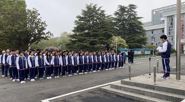 7时15分,体育场前,朝阳初升;国旗台下,微风和煦;全体师生,庄严肃立。我校国旗班护卫队迈着整齐的步伐,从严阵以待的队列前走过。伴随着雄壮的国歌声,鲜艳的五星红旗迎着清晨的第一缕阳光徐徐升起,全校师生仪态严整,向随风飘扬的国旗行注目礼。