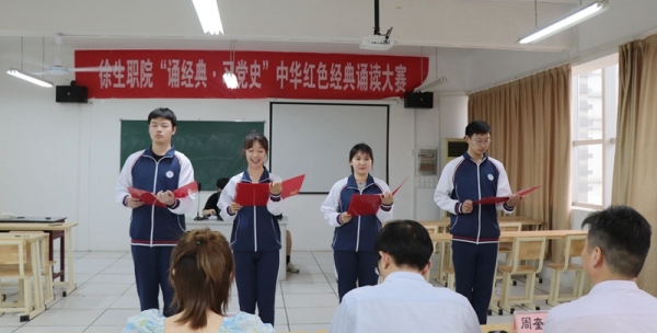 为引导广大学生学习党史,诵读红色经典,传承红色基因,6月3日,我校在泉山校区综合楼409教室举办了以“诵经典·习党史”为主题的中华红色经典诗文诵读大赛。本次比赛由教务处与基础部牵头组织,自5月上旬比赛通知发出后,各二级学院广泛动员,加强指导,在学生中形成了诵读红色经典的浓厚氛围。