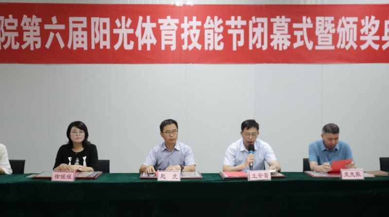 以“喜迎建党100年 阳光体育我先行”为主题的学校第六届阳光体育技能节于6月21日下午圆满闭幕。校党委委员、副校长赵虎,校党委委员、副校长王安雷,教务处处长史先振,团委副书记徐媛媛,学工处老师秦传伟以及各二级学院副书记出席闭幕式并为获奖集体和个人颁奖。闭幕式由体育部部长宋广侠主持,王安雷宣读表彰文件,赵虎为闭幕式致辞,卫生健康学院任志伟代表获奖运动员发言。