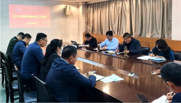 10月7日上午,我校在综合楼一楼会议室,专题召开疫情防控常态化下新学期学生工作会议。会议由学工处处长郭士焱主持,各二级学院书记、副书记,学工处,保卫处,后勤服务处,团委负责人参加了会议,副校长王安雷出席会议并作重要讲话。