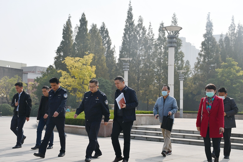 为贯彻落实国务院“10.22”校园安全专项整顿会议精神,10月27日上午,市公安局内保支队副支队长冯涛率领由徐州市公安局、教育局、市场监管、消防、电力、燃气等多部门组成的徐州市高校安全专项检查组来我校进行安全工作检查。保卫处、教务处、后勤管理处等部门负责人陪同检查。