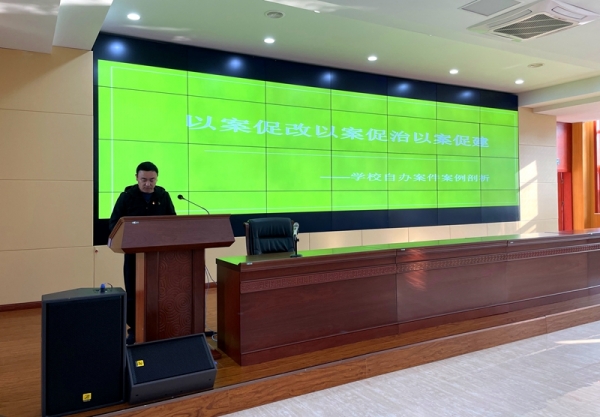 随后,在三楼多功能报告厅校纪委副书记杨晓征作了“以案促改以案促治以案促建”案例剖析报告。通过身边的典型案例,以案明纪、以案示警,提醒党员干部要存戒惧,知敬畏,守底线,以案为鉴,警钟长鸣,慎始敬终,行稳致远。
