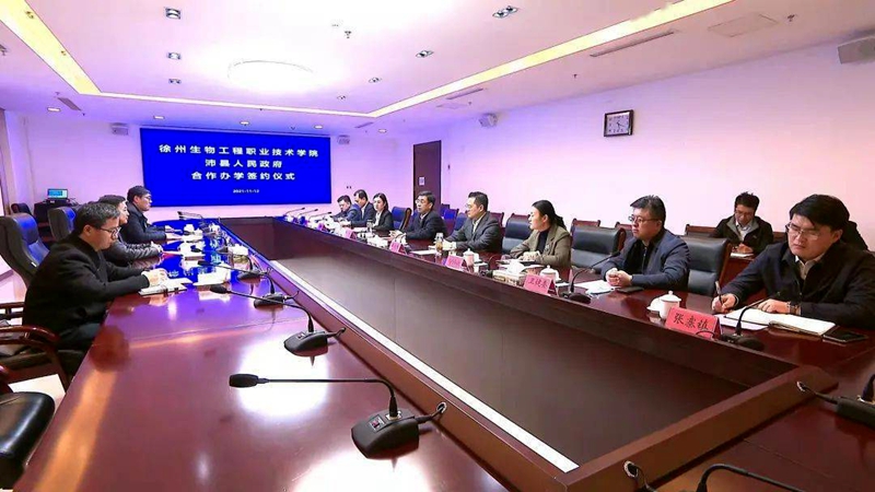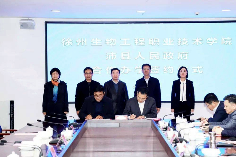仪式现场,校党委副书记、校长徐锋与沛县县委副书记、代县长索向东签订合作办学协议,双方在沟通协商的基础上,决定在原张寨高级中学校区举办公办高职教育——徐州生物工程职业技术学院沛县分院,办学规模2500人,主要专业有动物医学、植保、园艺、护理、康复等。