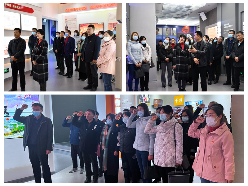 大家首先来到经开区廉政教育馆,该馆设计内容以“不忘初心、牢记使命”为教育主题,全体党员依次参观了序厅、旗帜篇、警示篇、践行篇、尾厅五个部分。在教育馆中,通过讲解员细致地讲解,图文展示及影视播放等形式,全体党员回顾了党的历史、学习了徐州市及经开区近年来查处的典型案例,深入了解了十九大以来市、区在党风廉政建设和反腐败工作上取得的明显成效,“算清人生七笔账”、“时光难倒回”等展区给全体党员留下了深刻印象,告诫了全体党员廉洁意识淡薄、贪腐欲望助长就会造成难以挽回的人生遗憾,教育引导全体党员要以案为鉴、以尺为戒,自觉加强廉洁意识,严守纪律底线。接着,全体党员教师面对鲜红的党旗,重温了入党誓词。