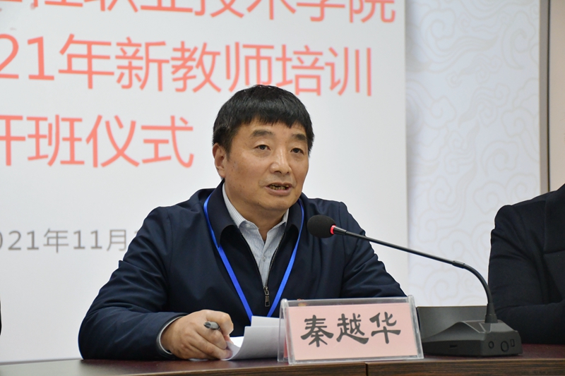 秦越华代表学校对新入职教师表示祝贺和欢迎,向新教师简要介绍了学校的办学历史,他指出在一代又一代徐生人的奋斗、拼搏下,如今的徐生院朝气蓬勃,快速发展,成绩喜人。青年教师是学校教育教学工作中一支重要的力量,更是关系到今后学校发展的关键。他希望青年教师要牢记“为党育人、为国育才”的初心和使命。要始终同党和人民站在一起,把落实党的教育方针、培养担当民族复兴大任的时代新人作为矢志不渝的职责使命。青年教师要践行“学高为师、身正为范”的德操和风范。学会不断加强自身的修养和素质的提高,改善育人方法,在潜移默化中将自己的优良品质教予学生。青年教师要成为大先生,做学生为学、为事、为人的示范。要牢记习近平总书记做“四有”好老师和“四个引路人”的嘱托,坚持四个相统一,把自己锻造成一名师德高尚的教师,为学校的高质量发展奉献青春与热血。