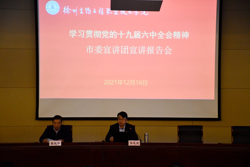 报告会上,学习贯彻党的十九届六中全会市委宣讲团成员、江苏师范大学马克思主义学院副教授张志建作宣讲报告。张志建教授以“以史为鉴,开创未来,奋进全面建设社会主义现代化国家新征程”为题,从“深刻认识召开党的十九届六中全会作出新的历史决议的重大意义”“充分把握党的十九届六中全会作出的新的历史决议的丰富内涵”“学习贯彻十九届六中全会精神,奋进全面建设社会主义现代化国家新征程”等三个方面对党的十九届六中全会精神进行了全面解读和深入阐释,为我校党员干部深入学习领会党的十九届六中全会精神提供了一次精彩辅导。