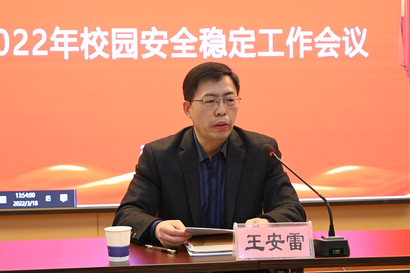 3月18日下午,我校在信息中心一楼会议室召开2022年校园安全稳定工作会议。党委委员、副校长王安雷出席会议。各二级学院党政负责人及各部门负责人参加会议。