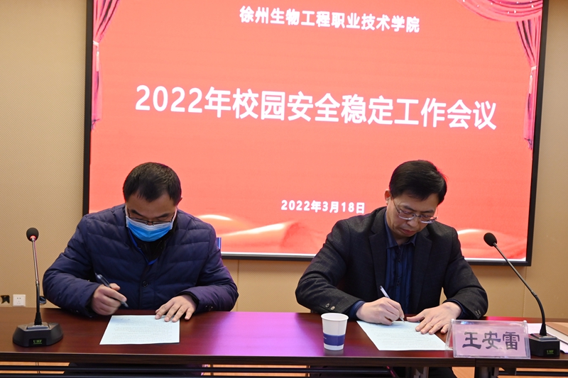 王安雷代表学校与学工处、后勤管理处负责人及各部门负责人签订2022年安全稳定工作责任书。