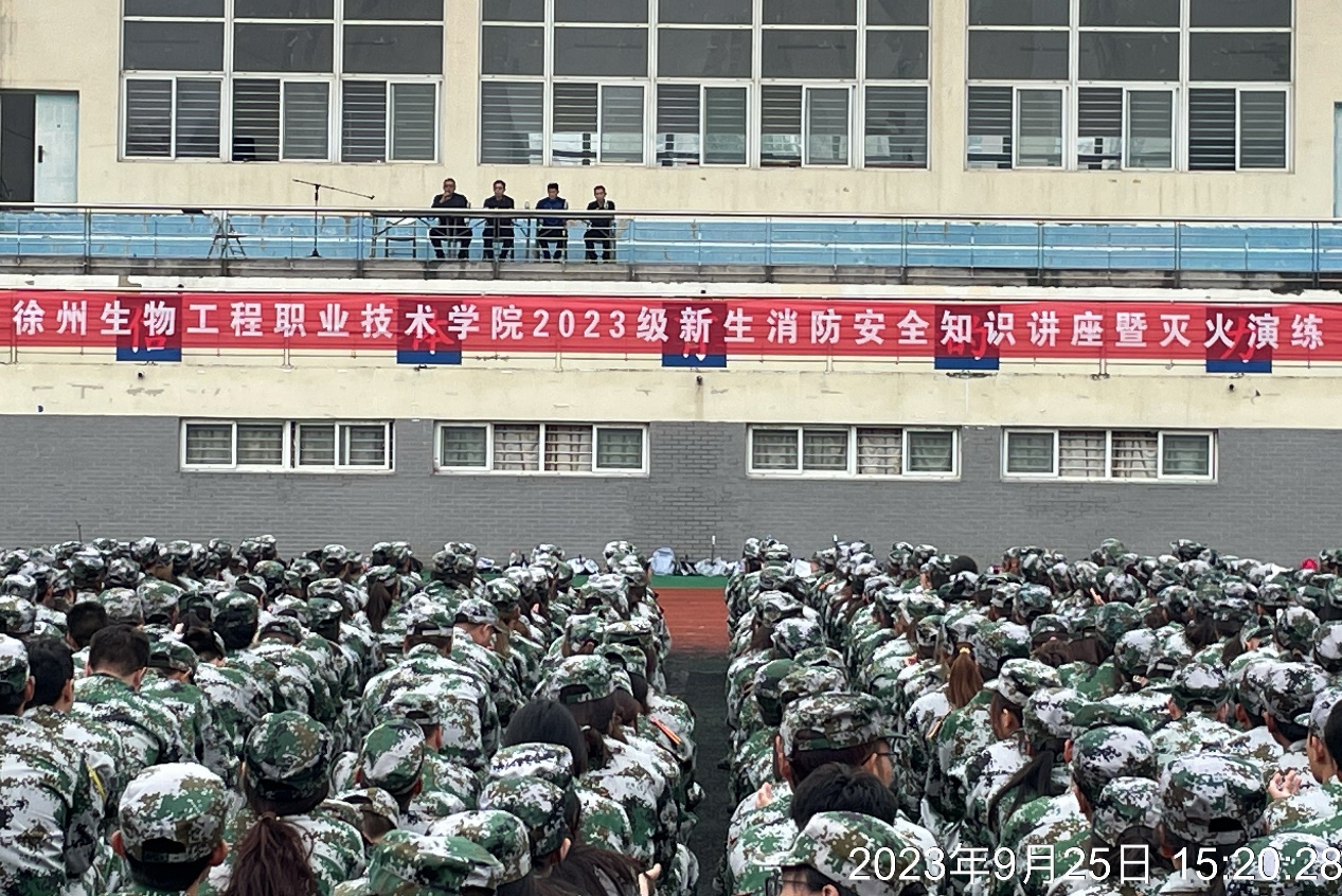 为扎实推进学校消防安全宣传教育工作,提升消防安全管理和宣传教育水平,增强大学生消防安全意识和自防自救能力。 9月25日下午,我校开展了“消防进军训”系列活动。活动由安保处、学工处联合各二级学院共同组织,校党委委员、副校长王安雷,保卫处处长李彭,学工处处长朱明,学工处副处长仝金鹏及各二级学院副书记出席活动,泉山校区全体2023级新生2700余人参加此次活动。
