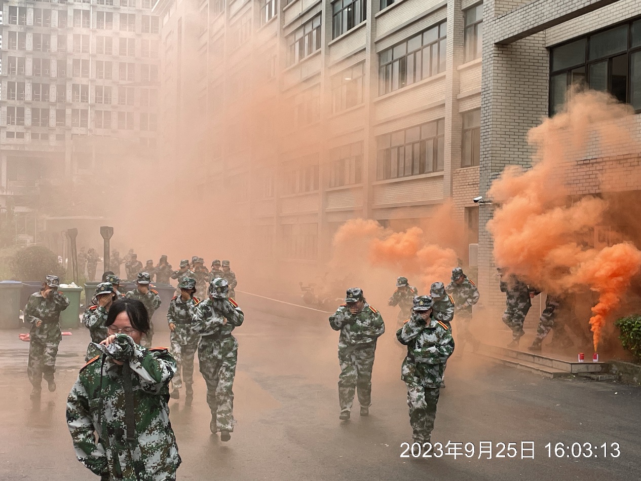 学校邀请徐州市泉山消防大队李亚副大队长为同学们现场讲授消防安全知识、灭火器使用方法,并指导新生进行灭火演练。随后,消防应急疏散演习在南苑公寓宿舍楼进行,烟幕弹燃起,警笛鸣响,学生按照预定疏散逃生方案,迅速、有序撤离到指定安全位置。演练活动结束后,李亚和李彭分别对活动进行了总结与点评,消防进军训系列活动圆满结束。