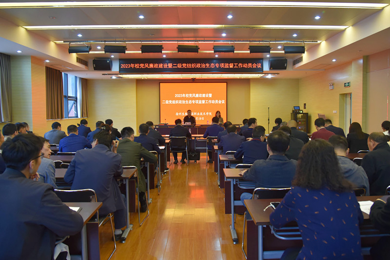 为加强党风廉政建设,深入开展学习贯彻习近平新时代中国特色社会主义思想主题教育,贯彻落实中央和省市委关于教育工作部署要求,推动全面从严治党向纵深发展、向基层延伸,为学校高质量发展提供坚强保障。10月19日下午学校在图文信息中心一楼视频会议室召开党风廉政建设暨二级党组织政治生态专项监督工作动员会议。校党委书记徐锋出席会议并作动员讲话,党委班子成员、部门负责人、纪委委员、纪检委员及专职纪检干部参加了会议。会议由校党委委员、纪委书记刘颖主持。