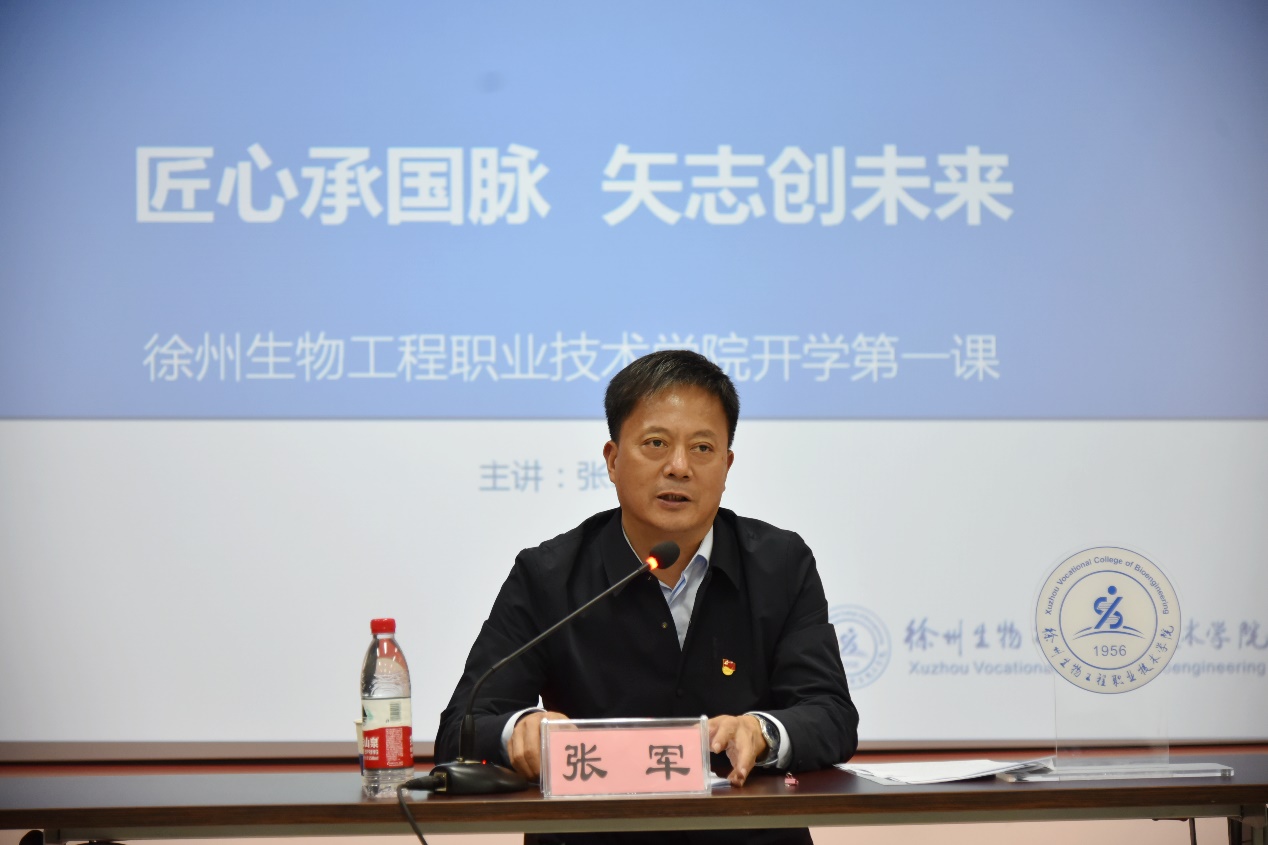 张军回顾了学校67年的历史,让学生了解学校的波澜壮阔的发展历程,同时了解学校下一个五年将以习近平新时代中国特色社会主义思想为指导,以“大生物大健康”为办学方向,践行“三快一高”办学理念,锚定“冲双谋本”目标,为全面开启特色鲜明优势突出的区域高职名校建设新征程而努力奋斗。