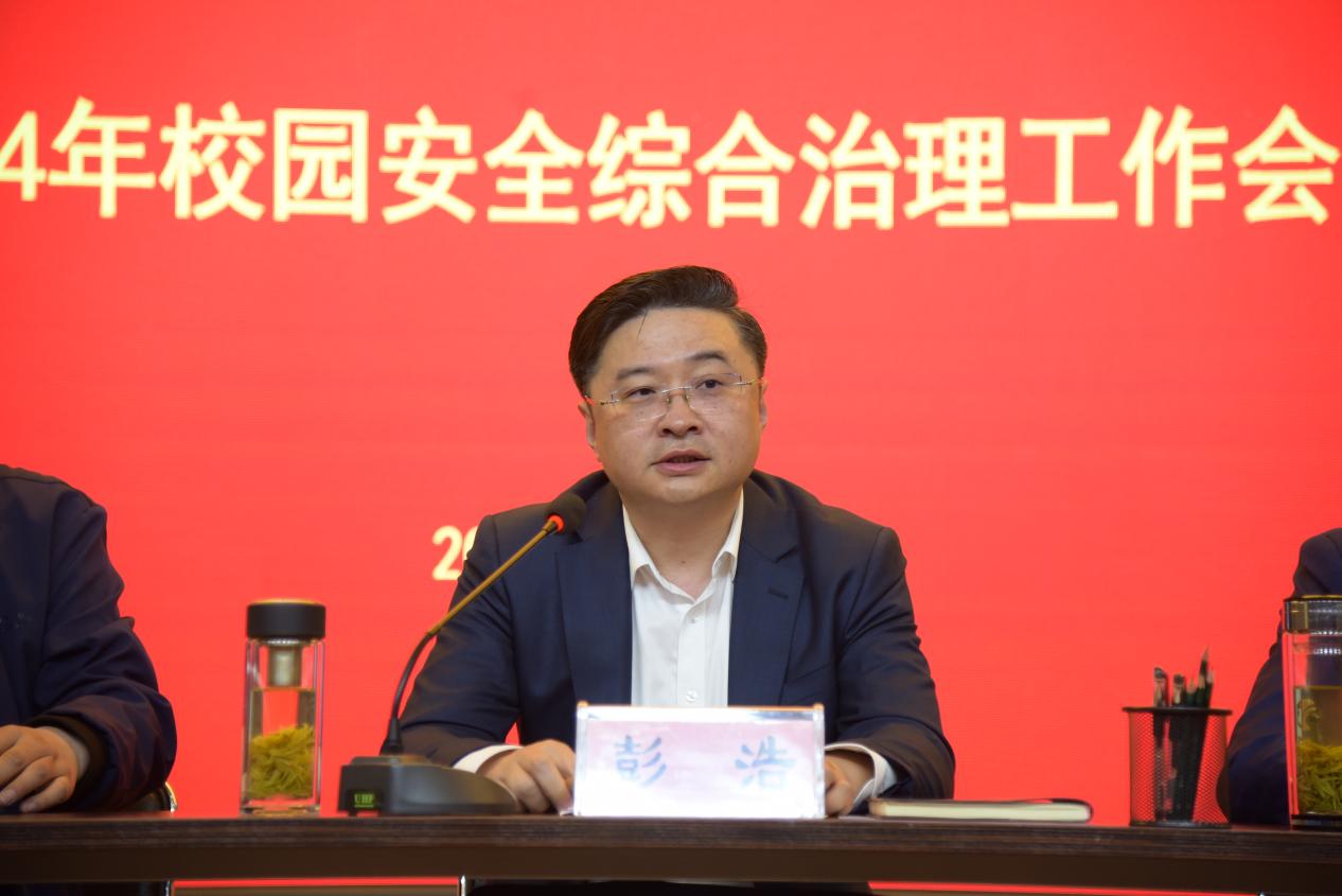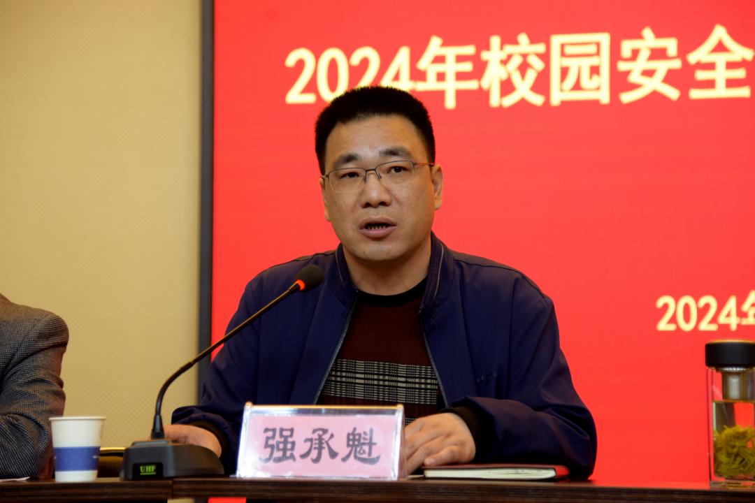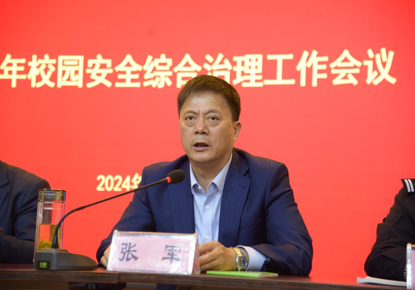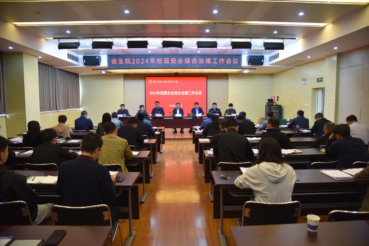 为深入贯彻落实习近平总书记关于安全生产重要指示精神和省委省政府、市委市政府对安全生产工作部署要求,4月11日上午,学校在泉山校区召开2024年度校园安全综合治理工作会议。党委副书记、校长张军,市委政法委副书记彭浩,党委委员、副校长强承魁,市公安局泉山分局大队长杨景程,党委委员、组织部部长严树超,党委委员、宣传部部长王冬出席会议,各二级单位党政负责人和安全员参加。会议由安全保卫处仝金鹏主持。