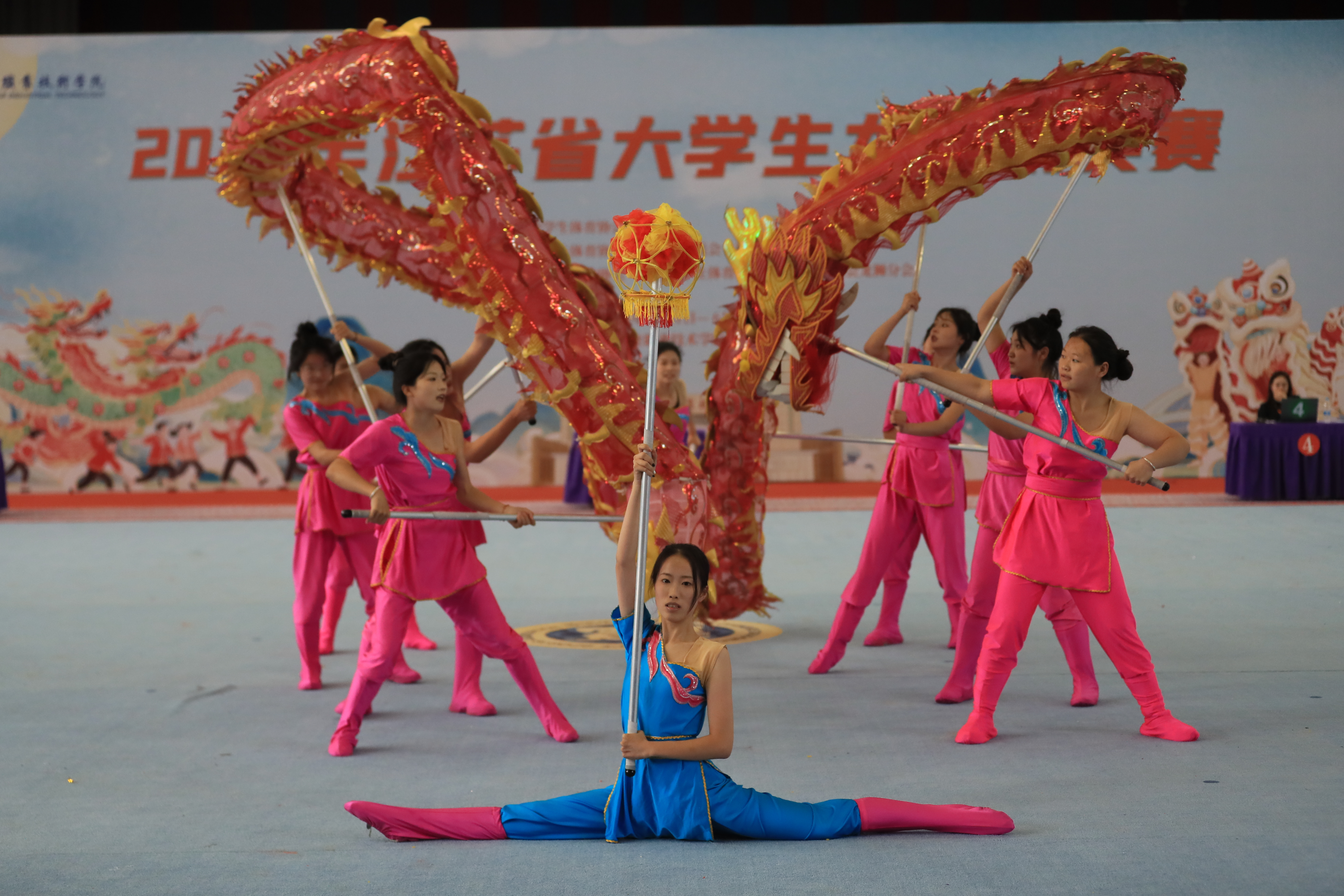 我校龙狮队分别由2023级邳州“定制村干”班同学、生物装备学院、动物工程学院组成,在与全省其他本专科高校同台竞技、激烈角逐后,荣获女子舞龙自选第3名、男子南狮第4名、男子北狮自选第5名、团体总分第5名的好成绩,为学校争得了荣誉。
