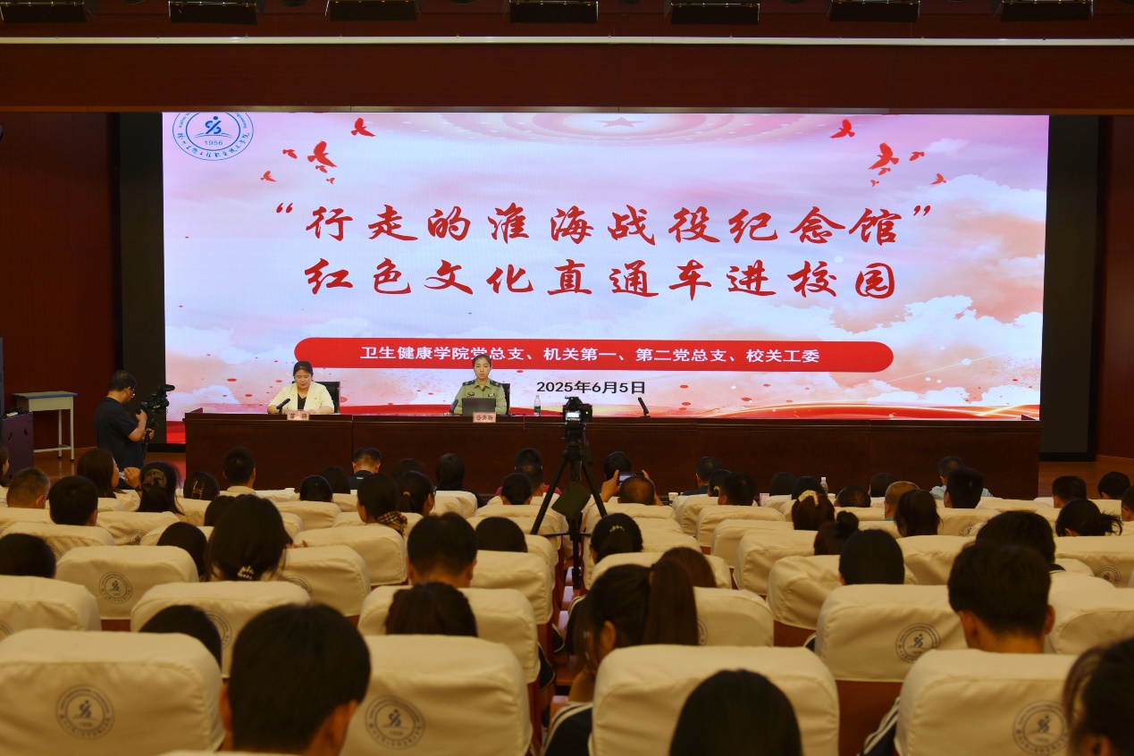 6月5日下午,卫生健康学院党总支联合机关第一、第二党总支以及校关工委,邀请淮海战役烈士纪念塔管理中心、新华日报社徐州分社,在我校图书馆举办“行走的淮海战役纪念馆”红色文化进校园活动。