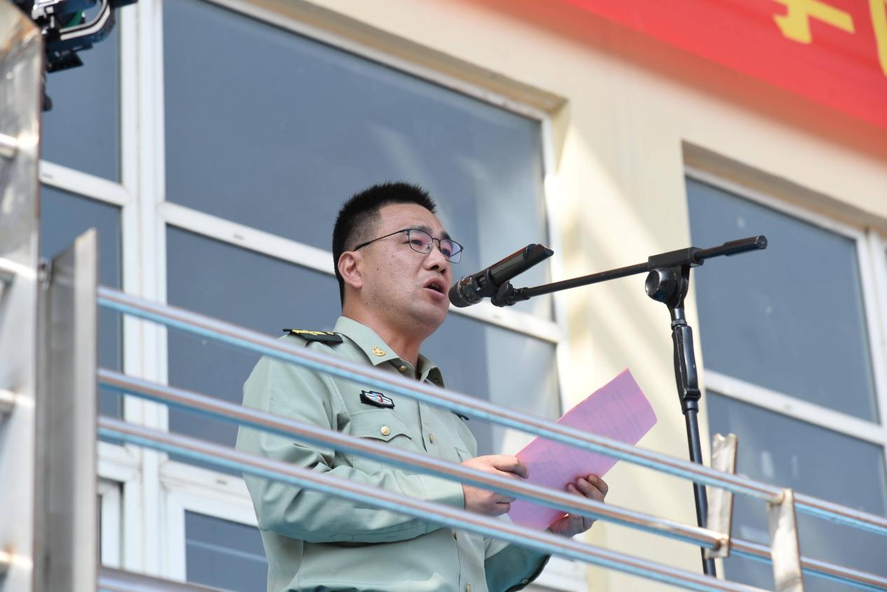 军训旅旅长强承魁作军训动员讲话。他首先代表学校对全体新同学表示热烈欢迎,向长期以来关心支持我校军训工作的承训部队官兵致以衷心感谢。他指出,军训作为国防教育第一课,是我校大学生思想政治教育工作的“永久”牌。他希望全体参训同学:一是要忠于祖国,传承奋斗之志,让血气方刚成为战胜未来一切艰难险阻的不竭动力,坚决让敢打敢拼成为大学生涯的最强音;二是要磨炼意志,凝聚集体之力,把“流血流汗不流泪”的意志磨砺和“掉皮掉肉不掉队”的集体凝聚,融入血液、铸入灵魂、 化为行动;三是要瞻远行实,践行青春之为,发挥青年人特有的朝气和激情,立志在祖国和人民最需要的地方追逐梦想、施展抱负、建功立业。