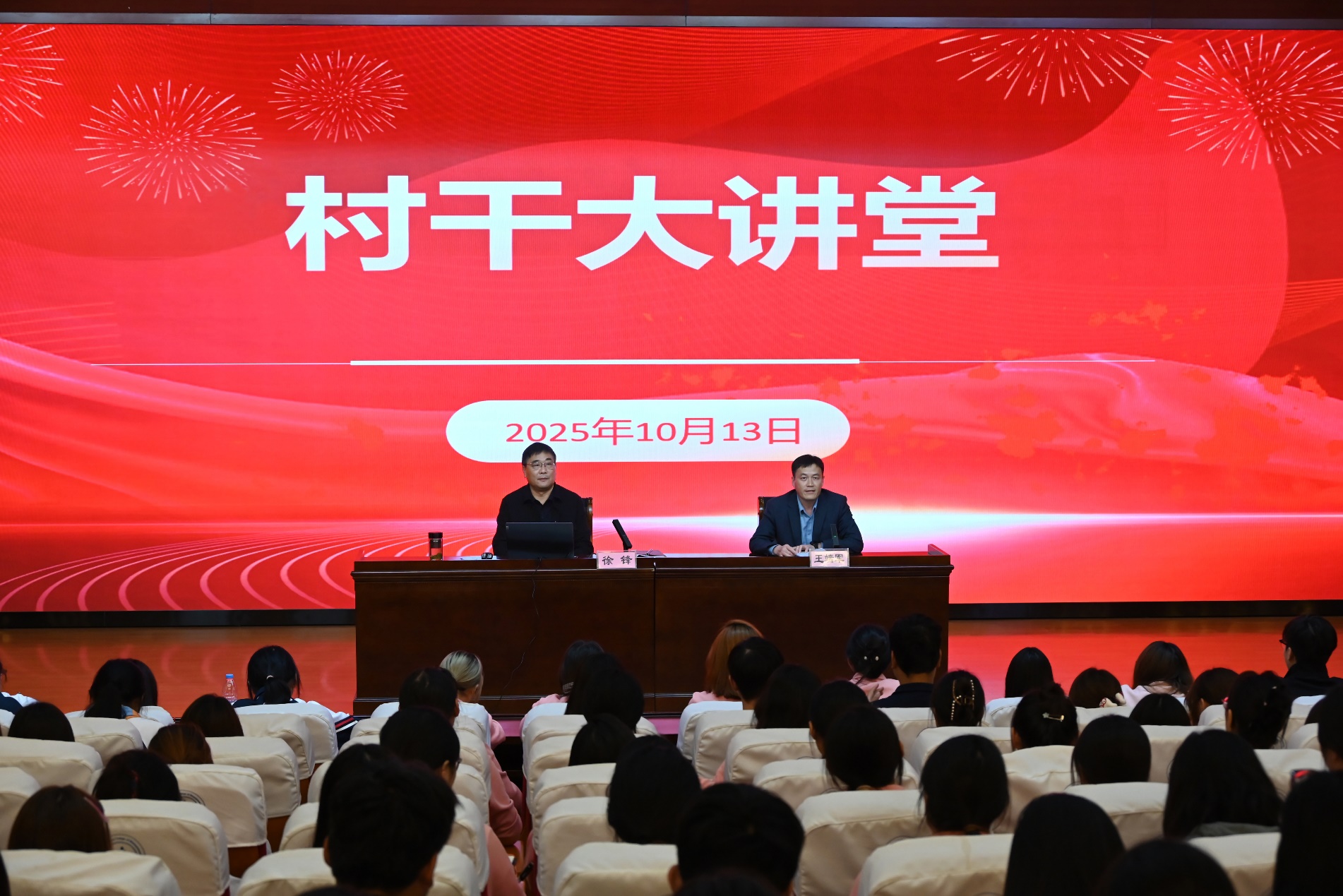 暮色四合,华灯点亮校园。10月13日晚,图书馆三楼报告厅内座无虚席,第十四期“村干大讲堂”如期开讲。校党委书记徐锋亲自登台,以《招商实务》为题,为现场230名“定制村干”带来一场兼具理论高度与实践温度的专题报告。两个小时的精彩分享中,师生们全神贯注、不时互动,现场气氛热烈,全程收获满满。