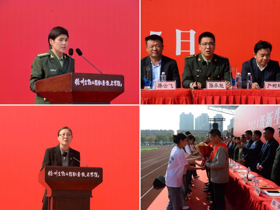 10月25日上午,2024级新生开学典礼暨军训成果汇演在泉山校区体育场隆重举行。党委书记徐锋,党委副书记、校长张军,党委副书记、军训旅政委谭红玲,党委委员、副校长、军训旅旅长强承魁,党委委员、纪委书记刘颖,党委委员、组织部部长严树超,校友代表滕云飞等出席。相关职能部门、各二级学院主要负责人,泉山校区、云龙校区2024级新生辅导员、班主任以及全体新生参加。强承魁主持开学典礼暨军训成果汇演。