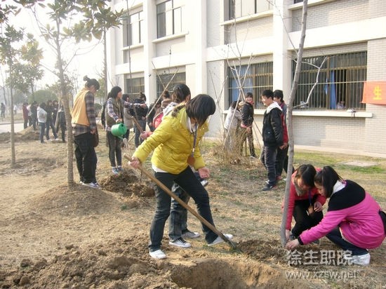 同学们来到三号教学楼周围的绿化区,清楚杂草,为花木翻土、浇水,干劲十足,繁忙而欢快的劳动现场为初春的校园带来了一抹新绿。