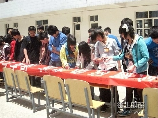 活动吸引了众多师生的积极响应,大家纷纷在标有“加强地震应急演练 提高自救互救能力”的横幅上签下自己的祝福,悼念逝者、祈福汶川。据活动举办方介绍,尽管大地震已过去三年,但今天重新面对这场人类的灾难时,仍旧有一种不可磨灭的沉痛和怀念。希望通过活动纪念汶川地震中失去的生命,引导学生关注灾后重建工作,关爱生命,珍惜生活,努力学习技能,为建设美好家园而贡献青春。