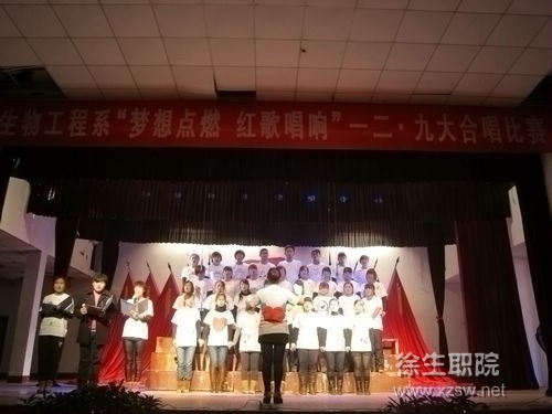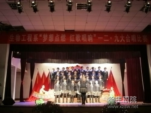 11月30日晚,为纪念一二・九”运动76周年,生物工程系“梦想点燃 红歌唱响”一二・九革命歌曲大赛在校大礼堂隆重举行。