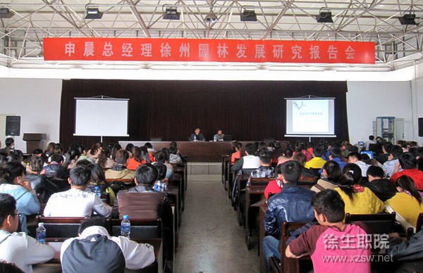 3月27日下午,农林工程系邀请徐州市九州园林绿化有限公司申晨总经理在校综合楼六楼报告厅举行徐州园林发展研究报告会,农林工程系部分老师及200余名学生参加报告会。