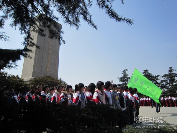 在庄严肃穆的氛围下,大家怀着无比崇敬的心情,踏着沉重的步伐绕塔一周进行参观。仪式结束后同学们参观了淮海战役烈士纪念馆。