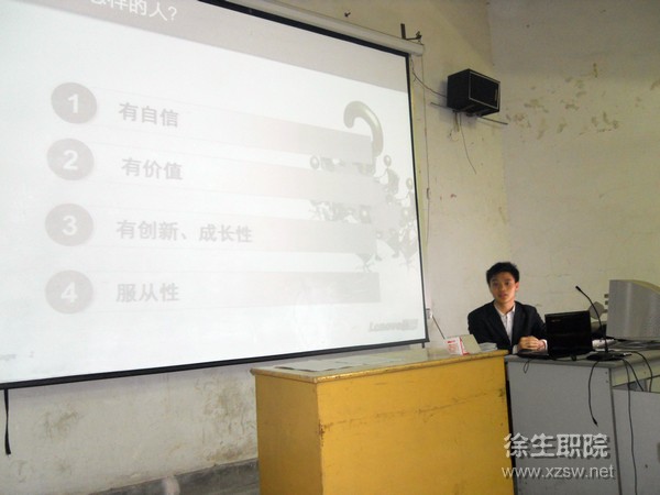 本次报告会是由软件技术06级的魏家龙、詹怀平两位同学主讲。两位同学在校期间多次获得一等奖学金、优秀学生干部等荣誉。去年5月份到徐州联想客户服务中心(徐州市零距离计算机服务有限公司)实习,并以优异成绩取得联想认证工程师资格。
