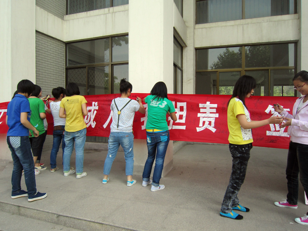 为增强青年学生的社会责任感和使命感,激发学生刻苦学习,奋发成才,生物工程系于5月14日下午在三号教学楼前举行了“我成人 我担责”签名仪式。