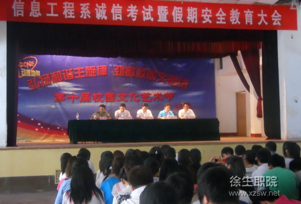 6月19日,信息工程系全体师生在校大礼堂隆重集会,举行诚信考试暨假期安全教育大会。张立逢主任主持大会。